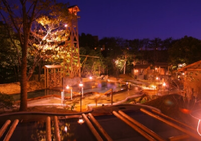 総湯・足湯のほか、3つの老舗旅館があり、「たがわ龍泉閣」は、里山の風景と雰囲気を肌で感じられる田園露天風呂が評判です。「まつさき」は、明治の文豪・泉鏡花が逗留し、同旅館を舞台とした小説『海の鳴る時』を執筆したことで知られます。