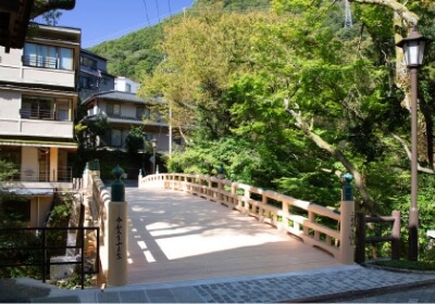 山中温泉は、大聖寺川がつくる緑豊かな鶴仙渓沿いにある温泉地です。奈良時代の高僧・行基が温泉を発見したとされ、鎌倉時代に能登の地頭、長谷部信連が温泉地を再興しました。