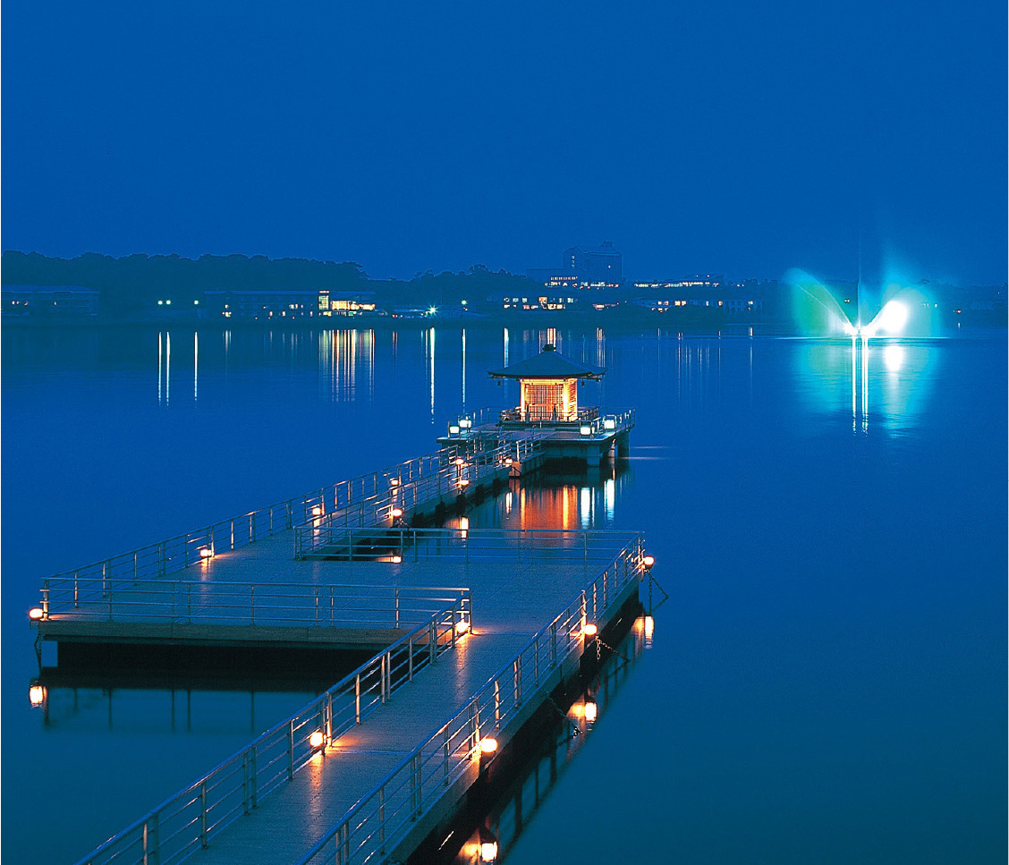 現在の柴山潟は、浮御堂と大噴水が水面に彩りを添え、昼は明るく開放的、夜はライトアップされて幻想的な雰囲気。潟を一周するサイクリングロードが整備されているほか、春から秋にかけては屋形船周遊や8月毎夜打ち上げられる湖上花火など、温泉とあわせて多彩なアクティビティが楽しめます。