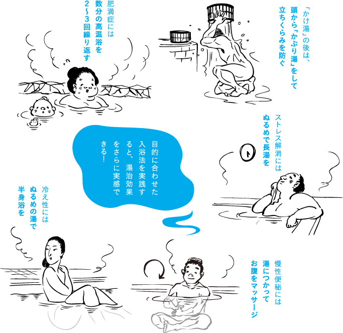 Learn about bathing techniques to enhance your health as well as onsen manners.